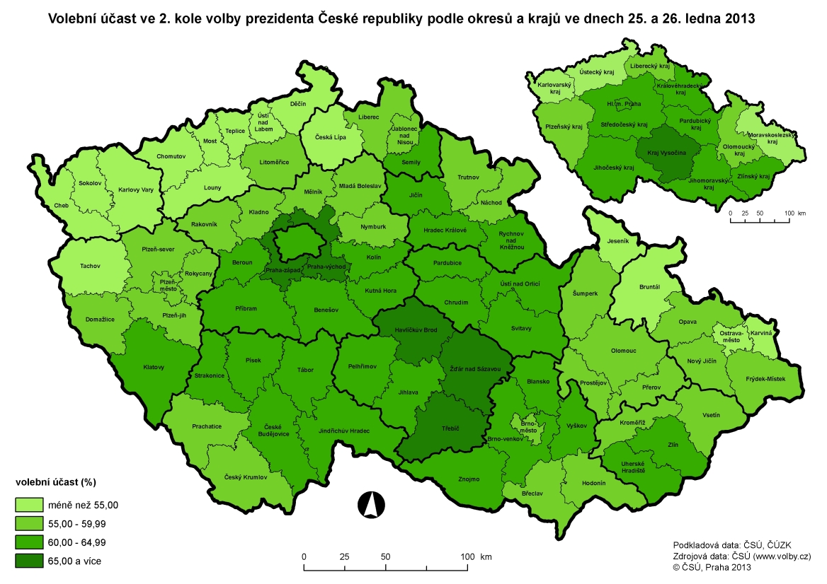 Volba prezidenta republiky 2013 - přehledy za okresy