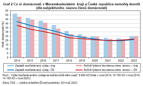 Graf 2 Co si domácnosti v Moravskoslezském kraji a České republice nemohly dovolit (dle subjektivního názoru členů domácností)