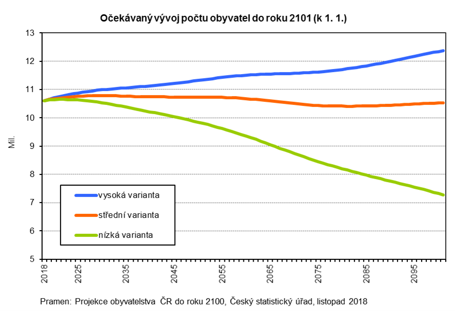 Očekávaný vývoj počtu obyvatel do roku 2101