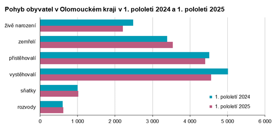 Demografický vývoj v Olomouckém kraji v 1. pololetí 2025