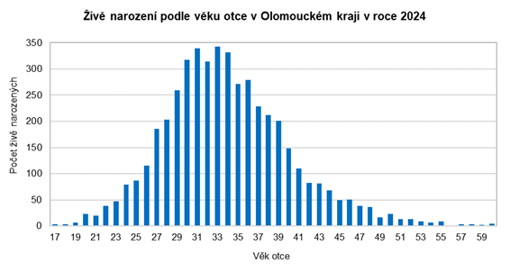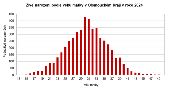 Počet dětí narozených matkám z Olomouckého kraje v roce 2024 poprvé od vzniku kraje poklesl pod 5 tisíc. Průměrný věk matek živě narozených dětí byl v roce 2024 31,0 let, otcové měli v průměru 34,5 let. Od roku 2002 se průměrný věk matek zvýšil o 3,5 roku, u otců došlo k navýšení o 3,8 roku. Nejvíce dětí se v uplynulém roce narodilo v srpnu (461 novorozenců).