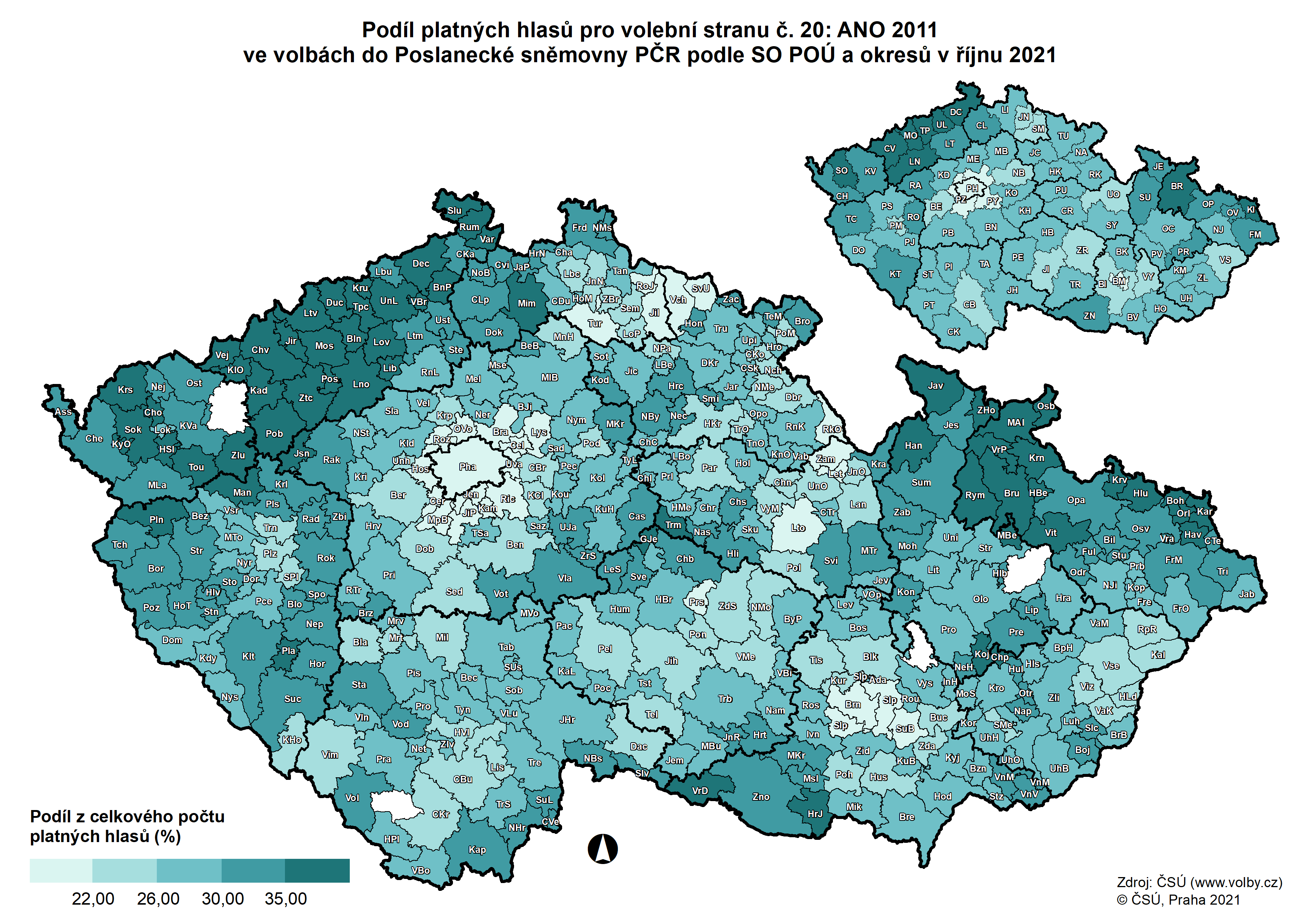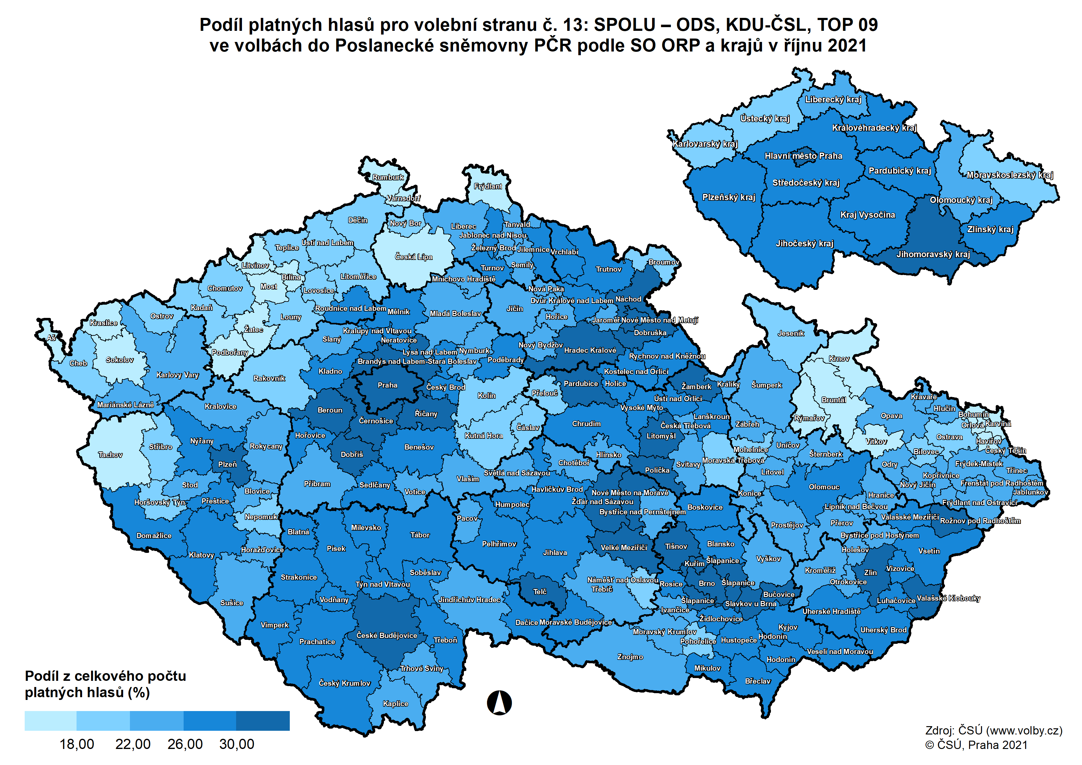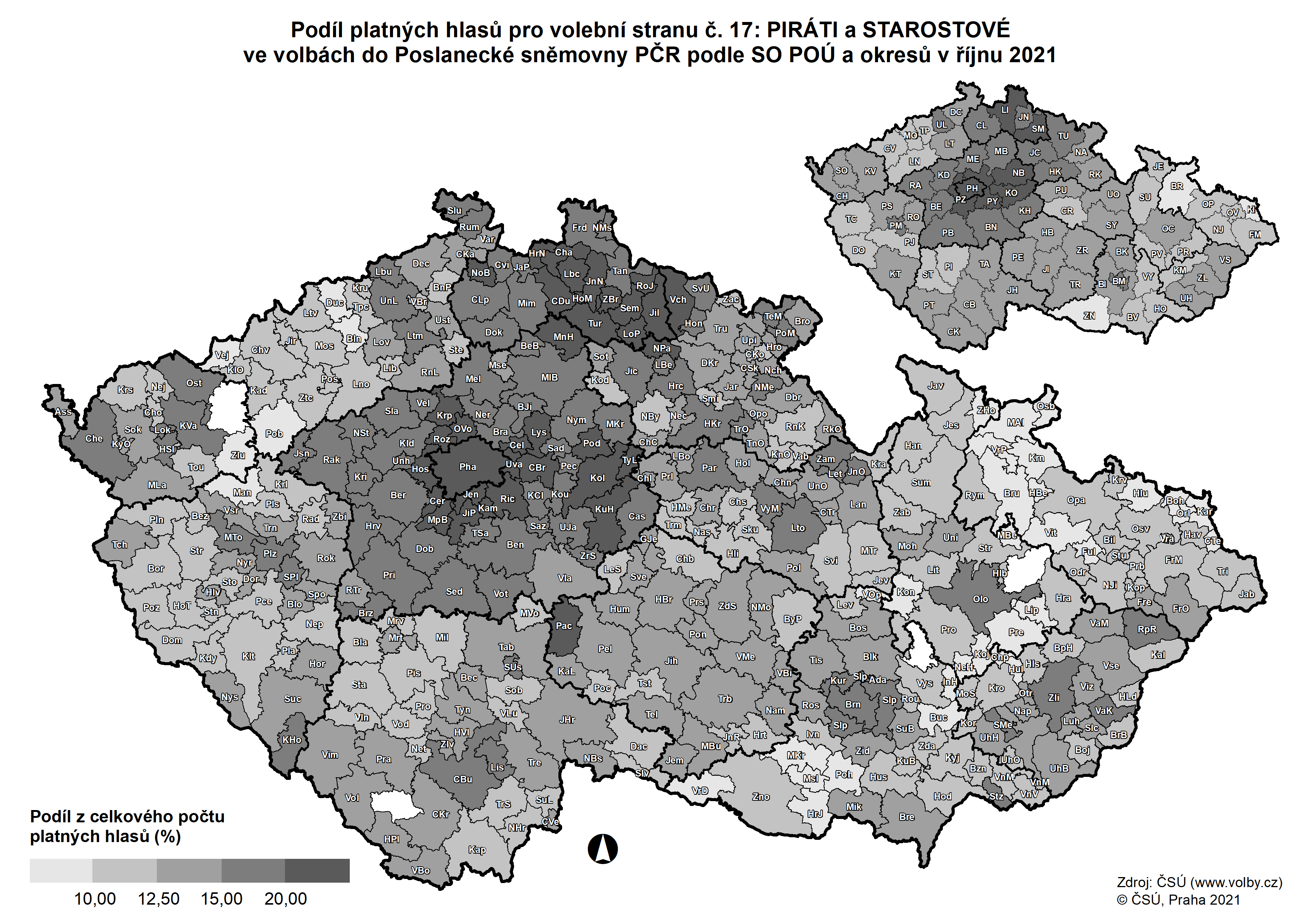 Kartogramy - volby do Poslanecké sněmovny Parlamentu ČR