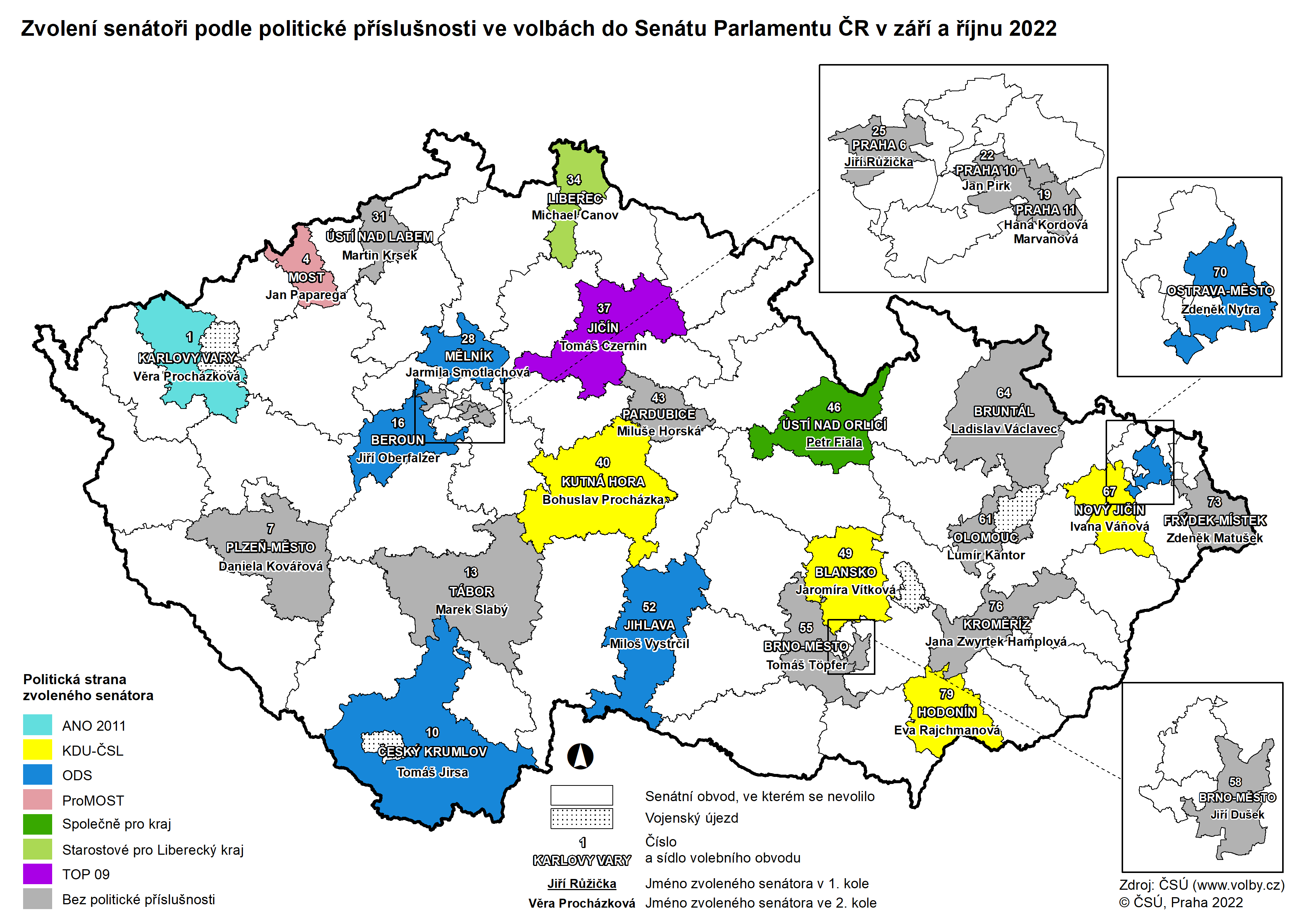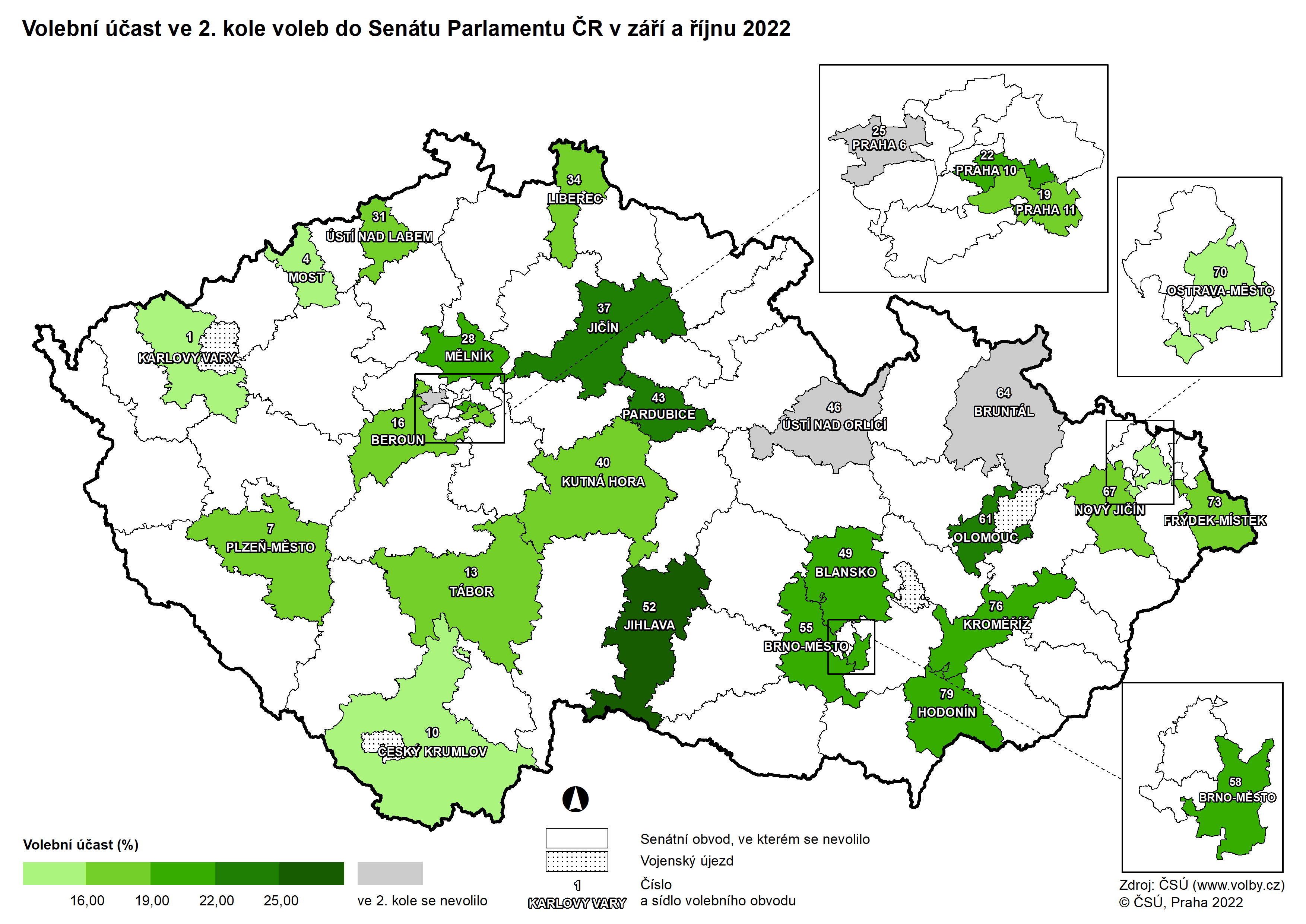 Kartogramy - volby do Senátu Parlamentu ČR 2022