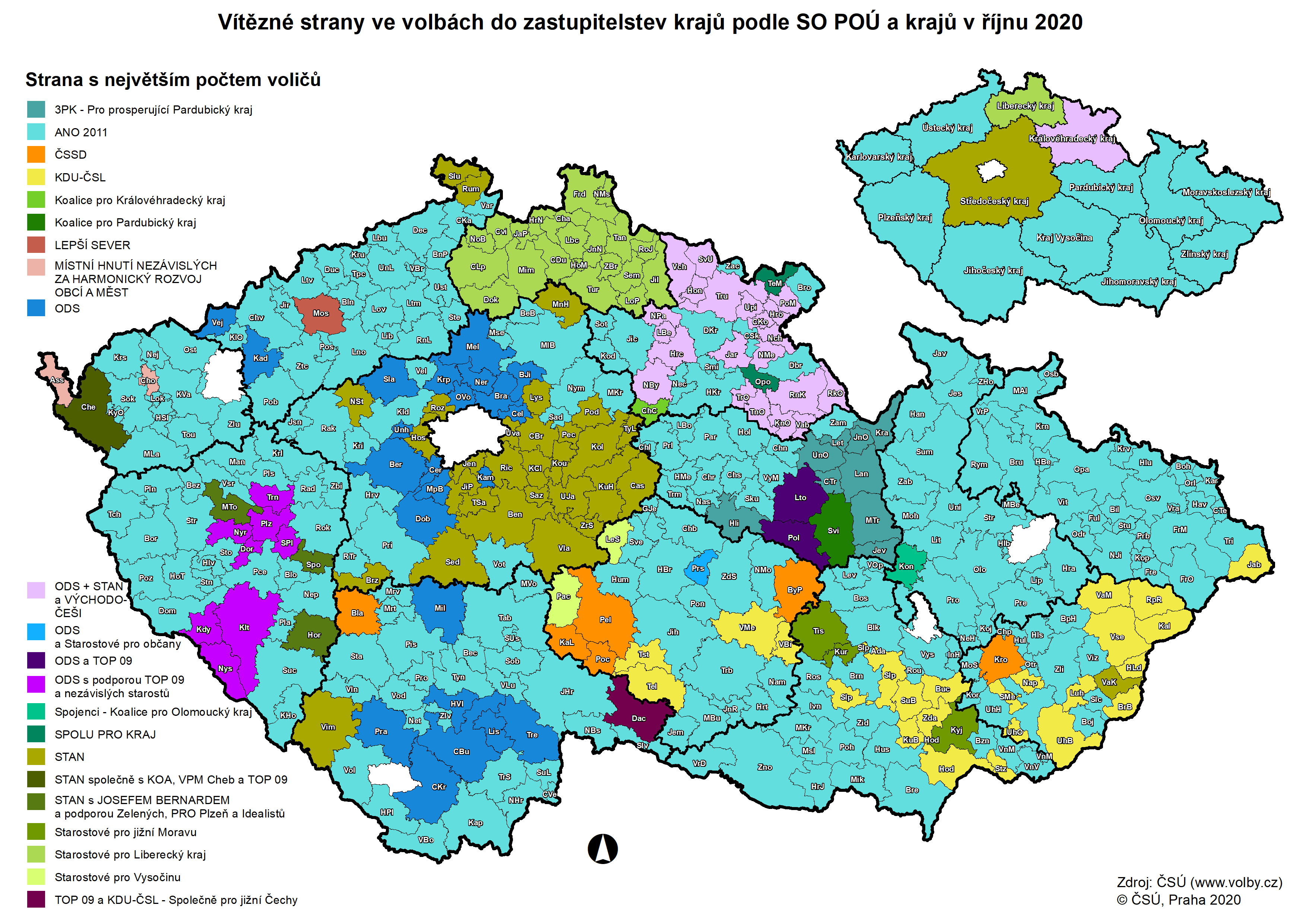 ve volbách do zastupitelstev krajů v říjnu 2020 podle: