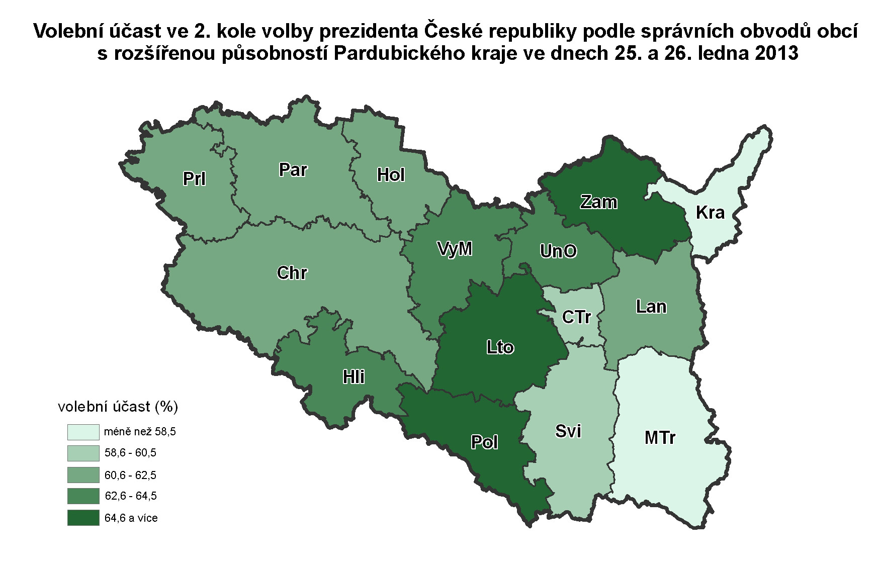 Volba prezidenta ČR - volební účast ve 2. kole dle SO ORP