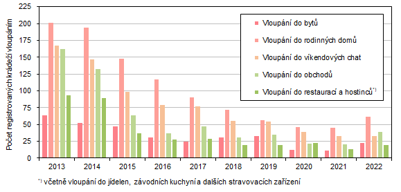 Registrované krádeže vloupáním v Pardubickém kraji (vybrané druhy)