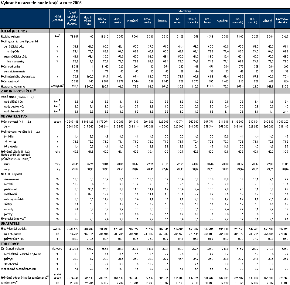 Mezikrajské srovnání vybraných ukazatelů za rok 2006