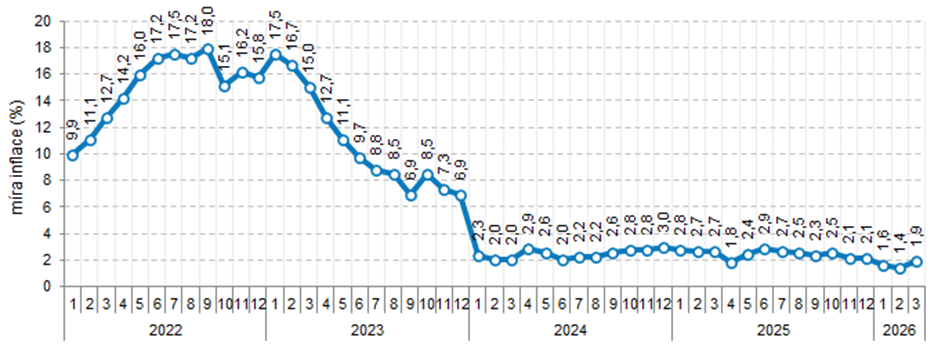 Míra inflace v ČR v březnu 2026