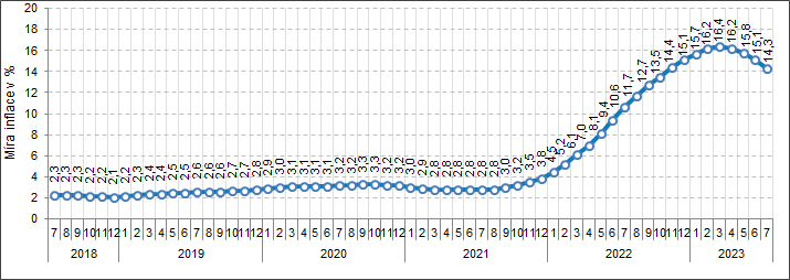 Míra inflace v ČR v červenci 2023
