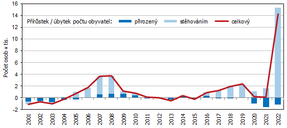 Pozn.: Bilance obyvatel zahrnuje osoby, kterým byla udělena dočasná ochrana v souvislosti s ozbrojeným konfliktem na Ukrajině.