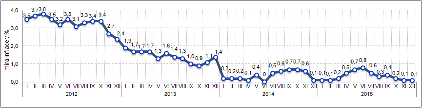 Průměrná roční míra inflace v roce 2015 byla 0,3 %