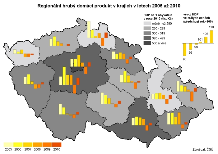 Podrobnější vysvětlení přepočtů je uvedeno na internetových stánkách ČSÚ v oddíle Regionální účty, Časové řady regionálních účtů Poznámky k údajům HPH a HDP publikovaným v roce 2011.