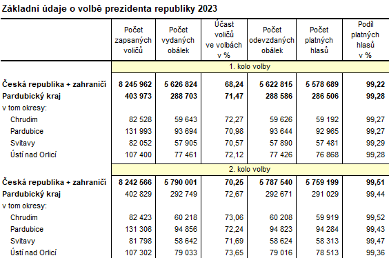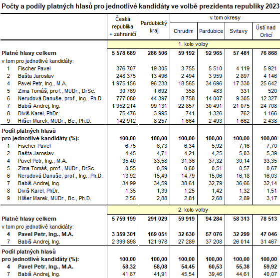 Výsledky 2. kola volby prezidenta republiky 2023 za Pardubický kraj
