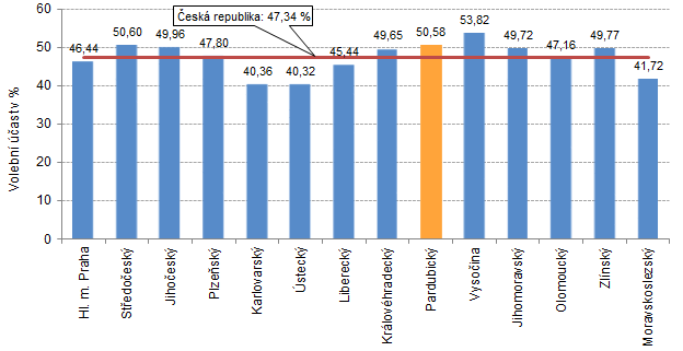 Volební účast v obvodu č. 44 Chrudim (46,9 %) byla 4. nejvyšší mezi všemi 27 obvody, kde senátní volby probíhaly, účast voličů v obvodu č. 50 Svitavy (43,4 %) byla 17. v pořadí.