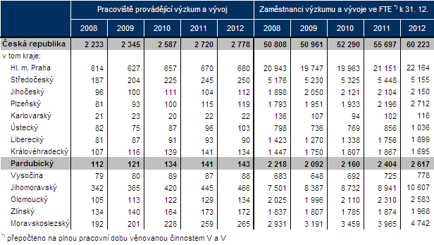 Výzkum a vývoj v Pardubickém kraji v roce 2012