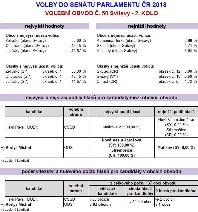 Zajímavosti - Senát 2018 (2. kolo) - Svitavy