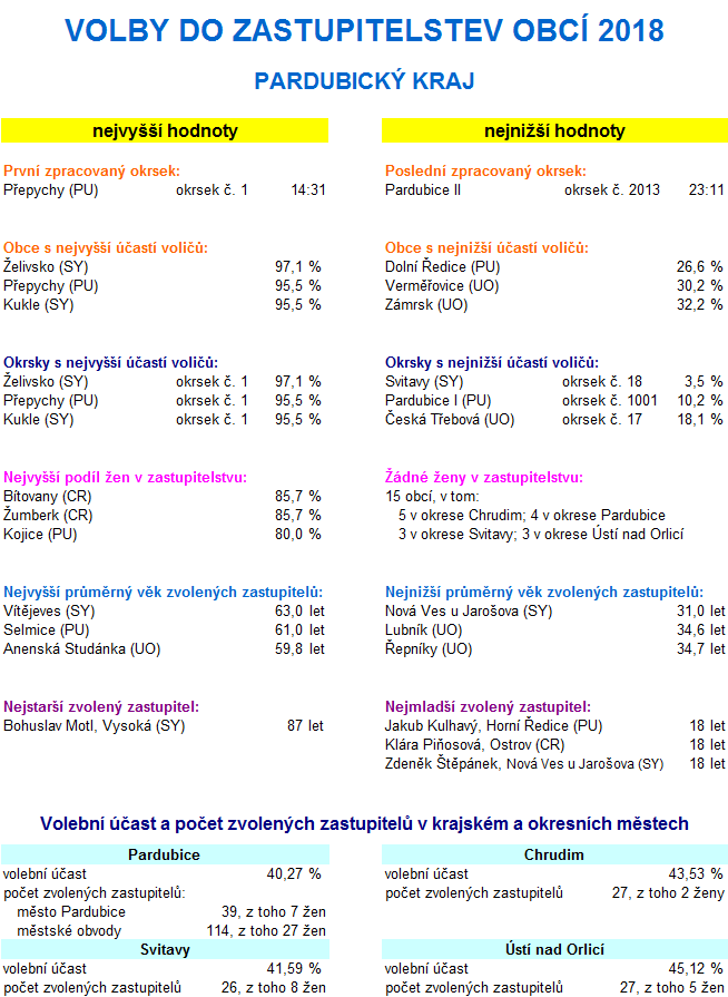 Zajímavosti - volby do ZO 2018 - Pardubický kraj