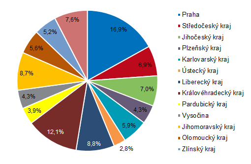 České a moravské rezidenty kromě české metropole v nejvíce případech oslovil kraj Královéhradecký (264 tis.) a podobnou měrou regiony Liberecký (191,6 tis.) a Jihomoravský (189,8 tis.).