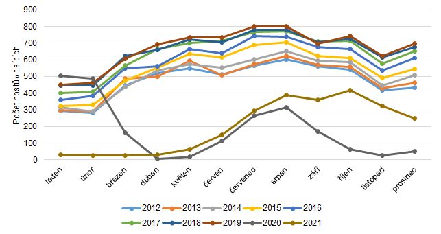 Obrázek 3: Celková návštěvnost Prahy v období 2012-2021 podle měsíců