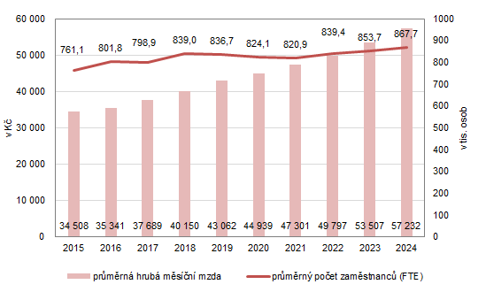 Průměrná hrubá mzda v Praze v roce 2024 byla 57 232 Kč, čímž převýšila republikový průměr o 24,0 %. Průměrná mzda v Praze pak byla o 45,2 % vyšší než v kraji s nejnižší mzdou (Karlovarský). Nominální růst mezd oproti roku 2023 byl v Praze na úrovni 7,0 %. Inflace v roce 2024 dosáhla na hodnotu 2,4 % a mzdy pražských zaměstnanců tak v reálném vyjádření (po započtení inflace) meziročně vzrostly o 4,5 %. Obrázek 4 ilustruje výši mezd a reálný vývoj mezd v Praze v posledních deseti letech. Zpomalení růstu reálných mezd Pražanů bylo zřetelné již v roce 2020, v roce 2022 došlo k výraznému poklesu reálných mezd (pokles o 8,5 %). V roce 2024 došlo k meziročnímu růstu reálných mezd v Praze o 4,5 %. Jedná se o návrat na úroveň roku 2018 a 2019.