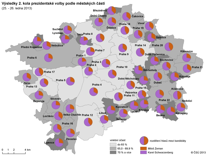 Výsledky 2. kola prezidentské volby v městských částech Prahy