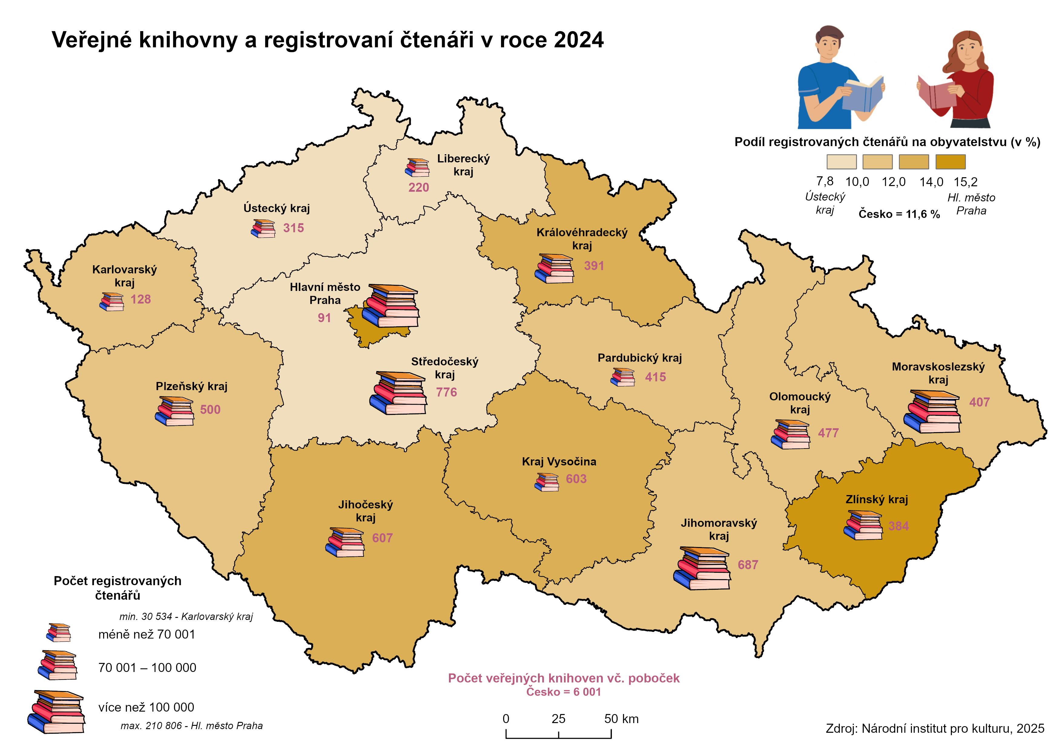 Kultura a kulturní instituce plní významnou sjednocující funkci, která prostupuje a propojuje různé oblasti lidské činnosti a společenského života. Vybavenost obcí zařízeními, která umožnují tvorbu, zprostředkování a uchovávání kulturních hodnot, tak zvyšuje kvalitu života v obcích a přispívá k osobnímu rozvoji a soudržnosti jejich obyvatel. K 31. 12. 2024 poskytovala veřejné knihovnické služby v Česku dle údajů Národního institutu pro kulturu síť 6 001 knihoven včetně poboček, což je o 175 méně než před pěti lety. Klesající trend je patrný i v Plzeňském kraji, kde bylo od roku 2020 zrušeno 7 knihoven (vč. poboček). V roce 2024 tak sídlilo v obcích Plzeňského kraje 500 knihoven včetně jejich poboček, s tímto počtem se region zařadil na páté nejvyšší místo v rámci Česka. Nejvíce jich bylo ve Středočeském (776) a Jihomoravském kraji (687), nejméně naopak v Praze (91) a na Karlovarsku (128).