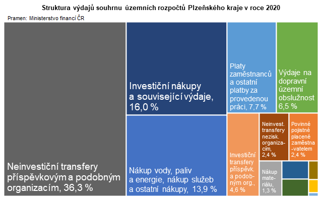 Nejnižší výdaje v roce 2020 vykázala obec Vísky (657 tis. Kč), potom již zmiňovaná obec Kaničky (725 tis. Kč), dále z okresu Rokycany obce Štítov (826 tis. Kč) a Hradiště (875 tis. Kč). Naopak město Plzeň vykázalo výdaje ve výši 7,3 mld. Kč, druhým městem s největšími náklady se stalo město Klatovy se 739,2 mil. Kč, následováno městy Domažlice (428,7 mil. Kč) a Sušice (422,0 mil. Kč).