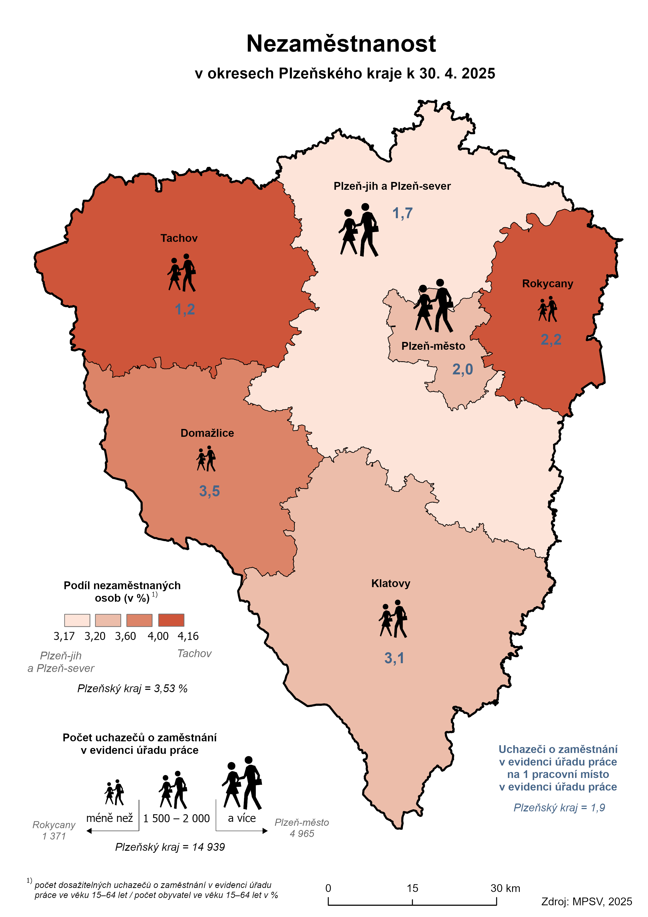 Nezaměstnanost v Plzeňském kraji k 30. 4. 2025