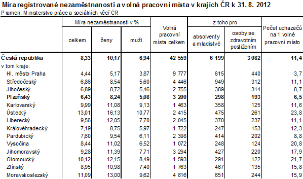 Nezaměstnanost v Plzeňském kraji k 31. 8. 2012