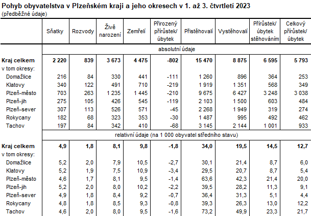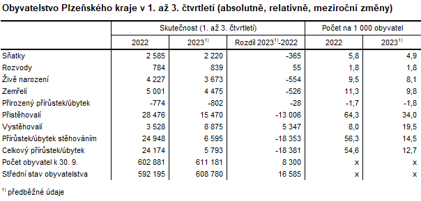 Obyvatelstvo v Plzeňském kraji v 1. až 3. čtvrtletí 2023 (předběžné údaje)