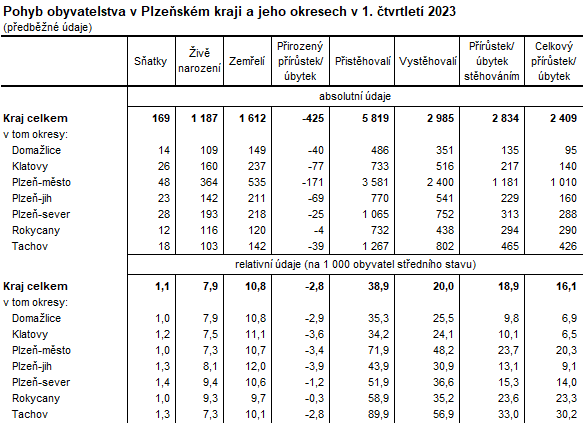 Obyvatelstvo v Plzeňském kraji v 1. čtvrtletí 2023 (předběžné údaje)