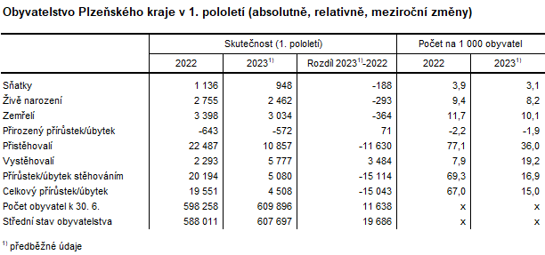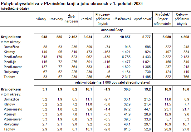 Obyvatelstvo v Plzeňském kraji v 1. pololetí 2023 (předběžné údaje)
