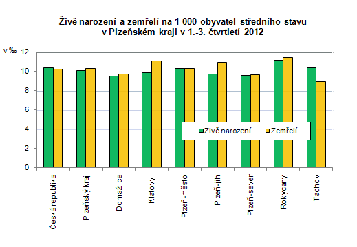 Celkem se v Plzeňském kraji živě narodilo 4 313 dětí, což bylo o 12 dětí více než ve stejném období předchozího roku. Meziročně se narodilo více dětí v okresech Domažlice (o 4), Klatovy (o 24), Rokycany (o 47) a Tachov (o 14). Největší meziroční pokles živě narozených dětí zaznamenal okres Plzeň-město, kde se narodilo o 43 dětí méně. Porodnost dosáhla v Plzeňském kraji hodnoty 10,1 ‰ a byla nižší než v ČR (10,4 ‰). Nejvyšší porodnosti dosahovaly okresy Rokycany (11,2 ‰) a Tachov (10,4 ‰). V Plzeňském kraji se narodilo mimo manželství 46,1 % dětí. Nejméně dětí mimo manželství se narodilo v okrese Plzeň-město (42,5 %), naopak nejvíce v okrese Tachov (59,0 %).