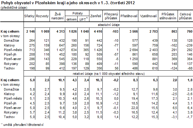 Obyvatelstvo v Plzeňském kraji v 1.-3. čtvrtletí 2012