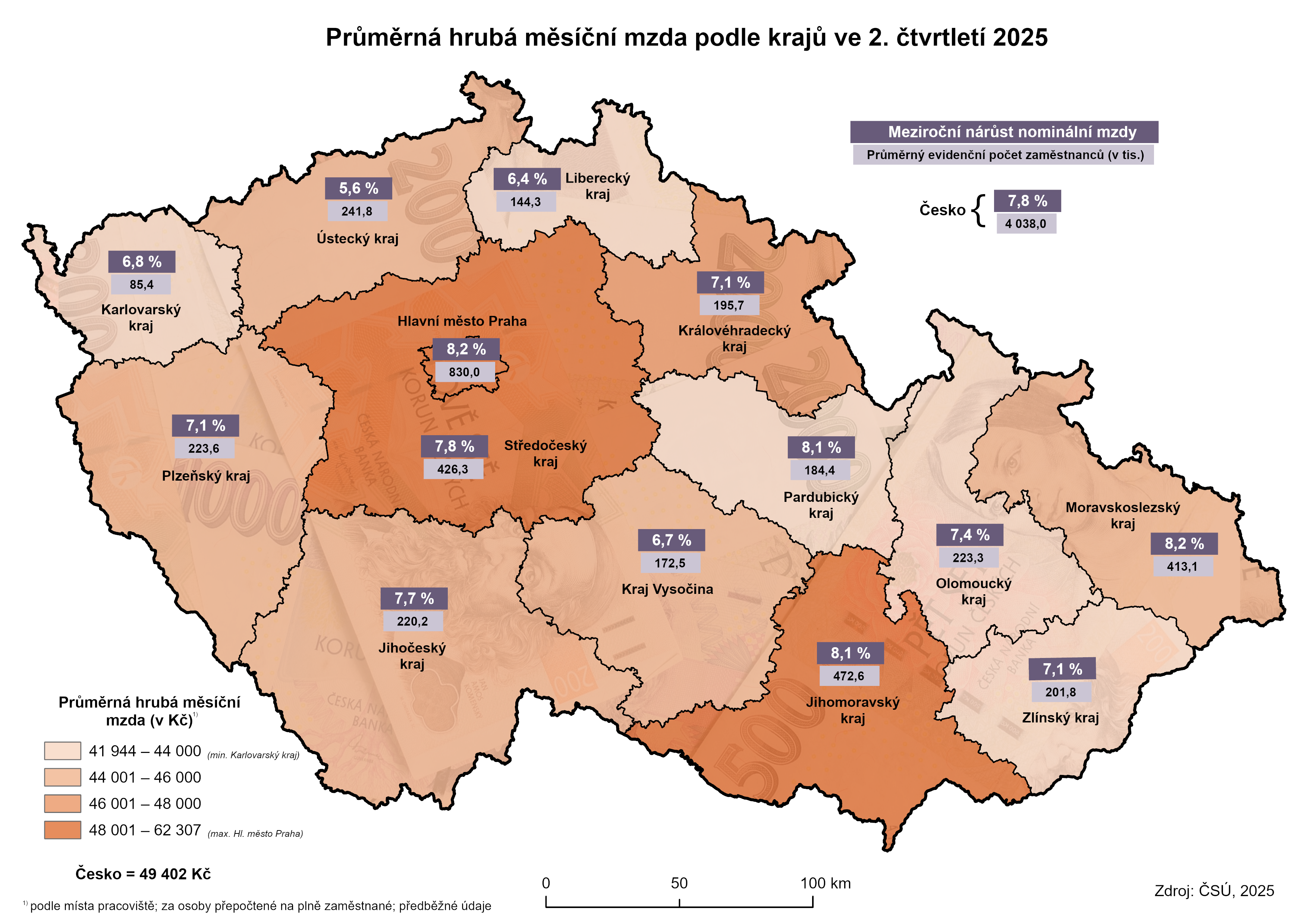 Mzda v Plzeňském kraji ve 2. čtvrtletí roku 2025 nominálně i reálně vzrostla a region se s její výší zařadil na pátou pozici. Meziročně se mírně navýšil také počet zaměstnanců v kraji.