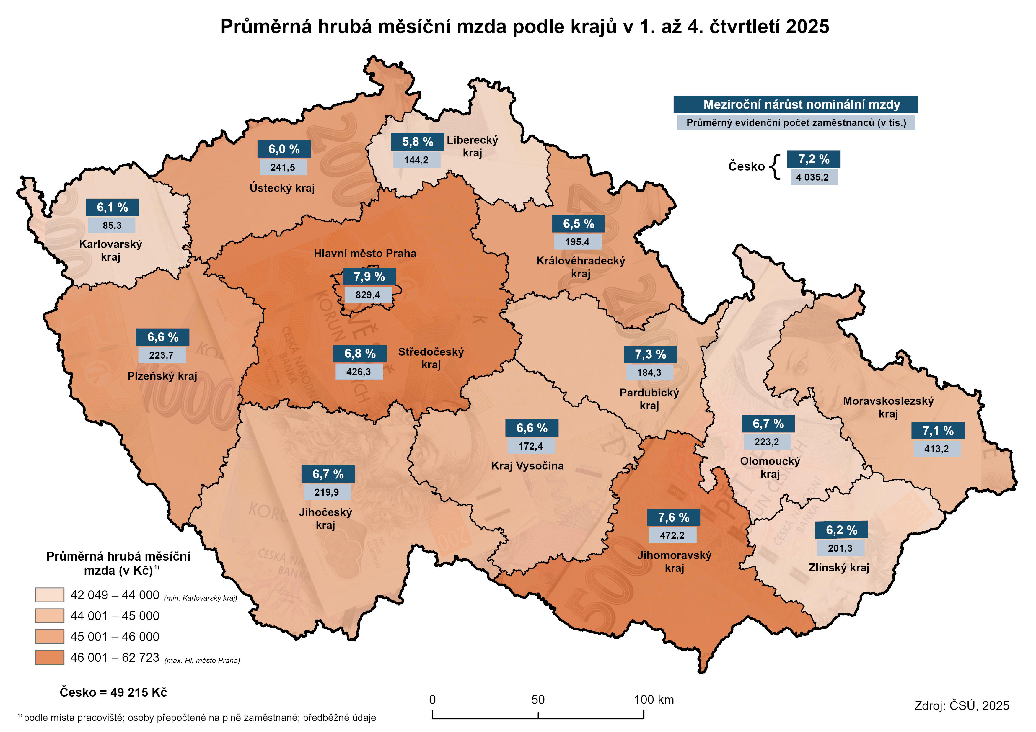 Mzda v Plzeňském kraji v roce 2025 nominálně i reálně vzrostla a region se s její výší zařadil na čtvrtou příčku. Zároveň jsme patřili mezi pět krajů, kde se meziročně počet zaměstnanců zvýšil.