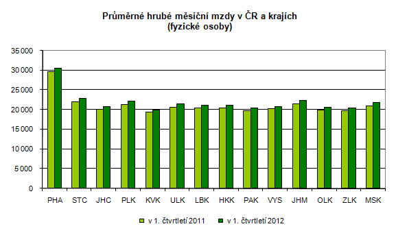 Více o průměrné hrubé měsíční mzdě v ČR v 1. čtvrtletí 2012.