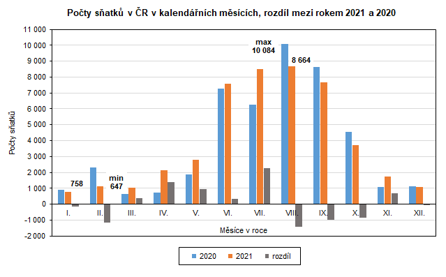 V roce 2021 bylo v České republice uzavřeno 46,8 tisíc manželství, to je téměř o 1,4 tisíc sňatků více než v předcházejícím roce. Sňatečnost v České republice rostla nepřetržitě od roku 2014. Tento trend zastavila až epidemie covid-19 v roce 2020 a opatření přijímaná proti jejímu šíření. V novém tisíciletí se v České republice konalo nejvíce svateb v roce 2007, kdy vstoupilo do manželství 57,2 tisíc párů. Naopak nejnižší hodnoty v počtu sňatků bylo dosaženo v roce 2013, v němž bylo sezdáno 43,5 tisíc párů. Druhé nejvyšší hodnoty od roku 2007 bylo dosaženo v roce 2019, kdy manželství uzavřelo 54,9 tisíc párů. Tento růst byl zastaven v následujícím roce, kdy došlo k poklesu o 9,5 tisíc sňatků.