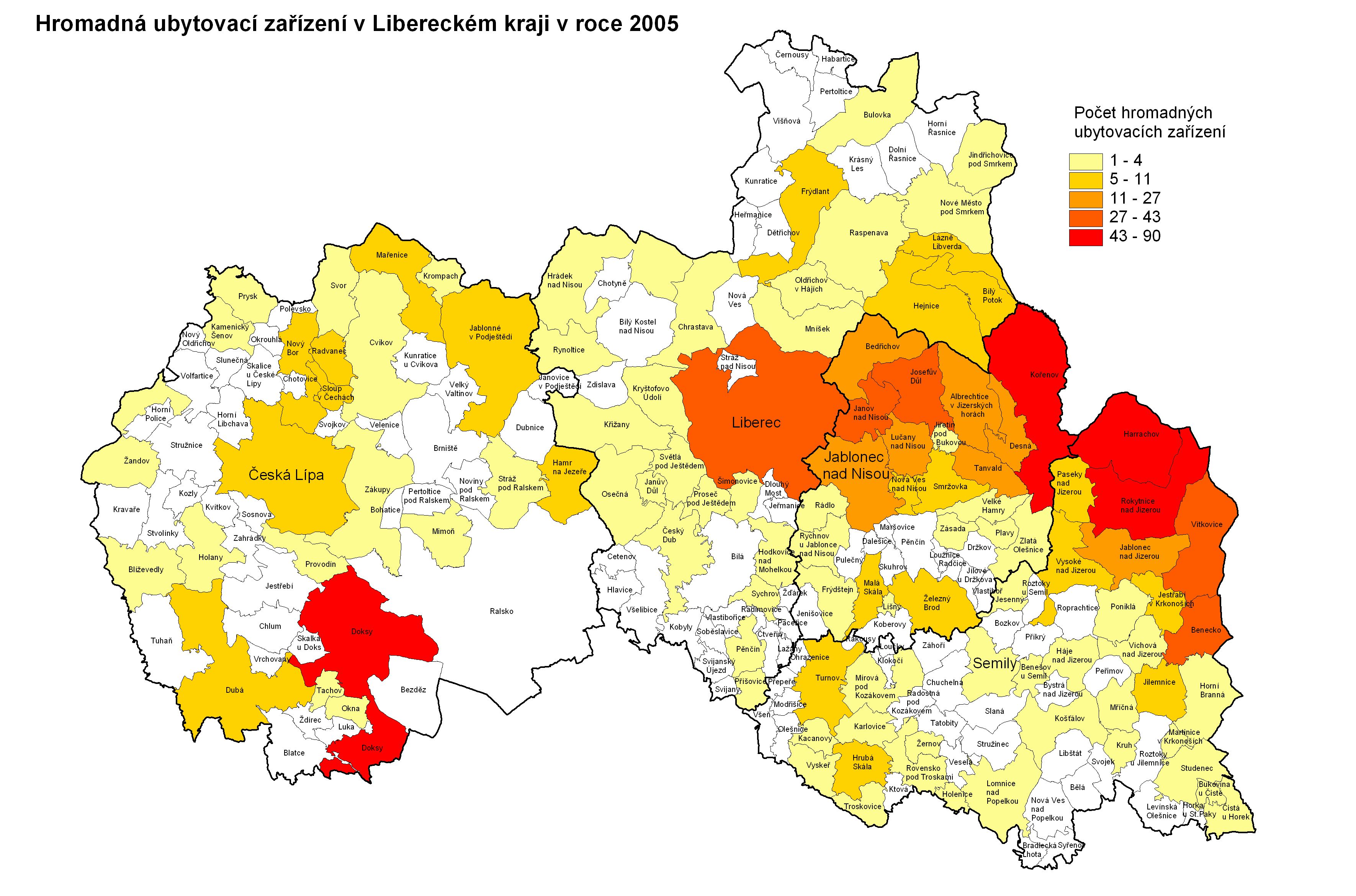 Hromadná ubytovací zařízení v Libereckém kraji v roce 2005 |