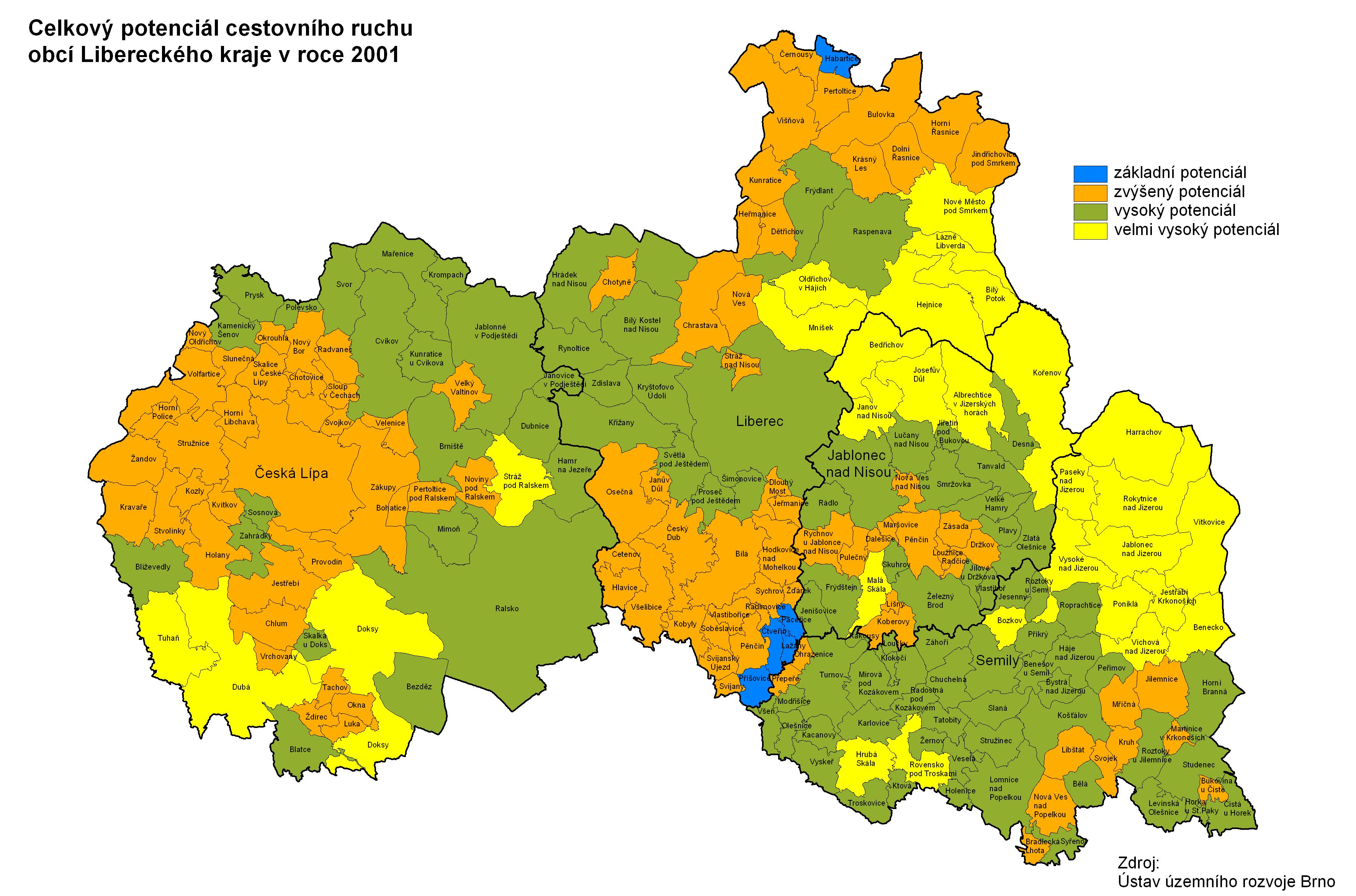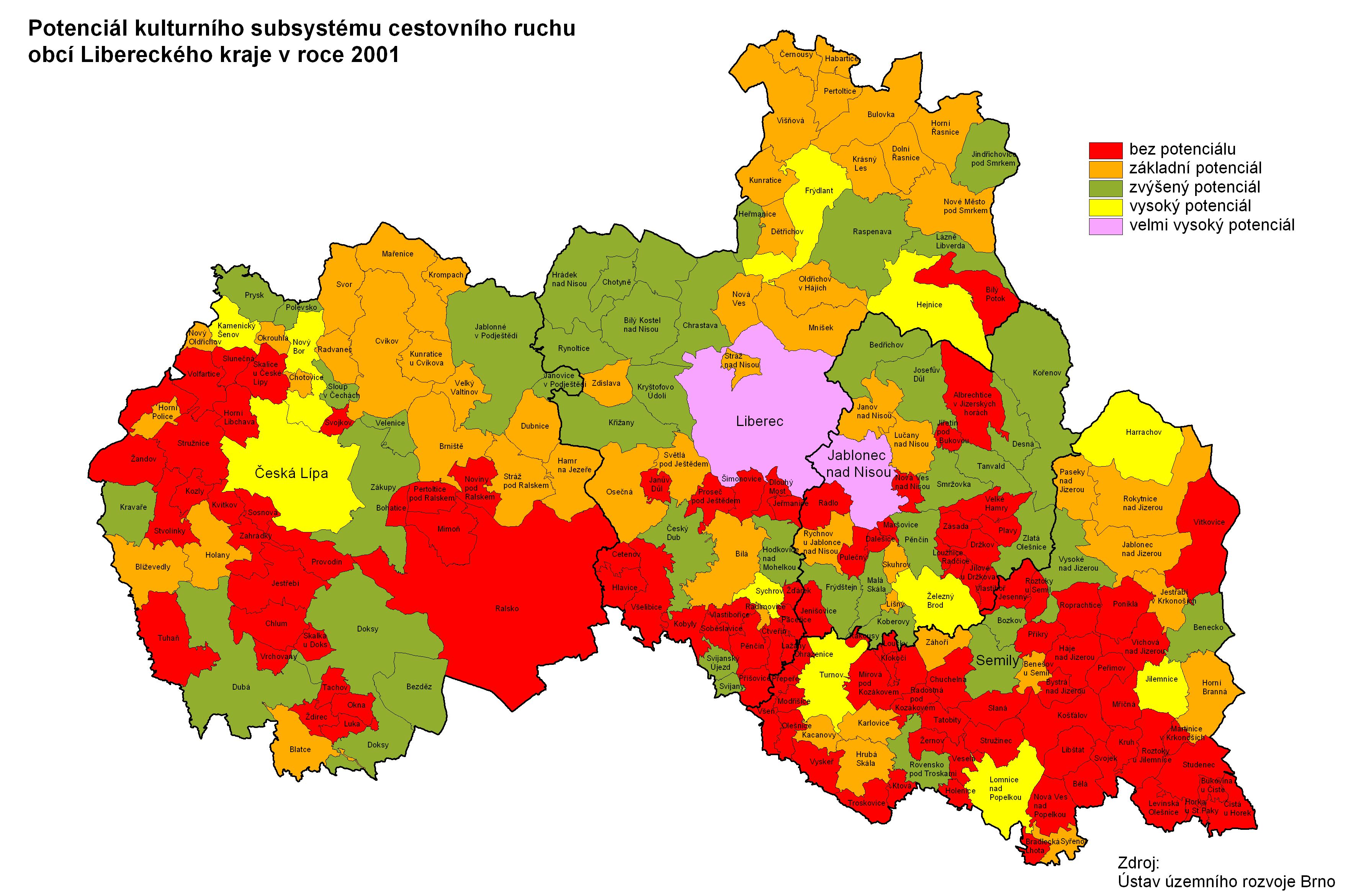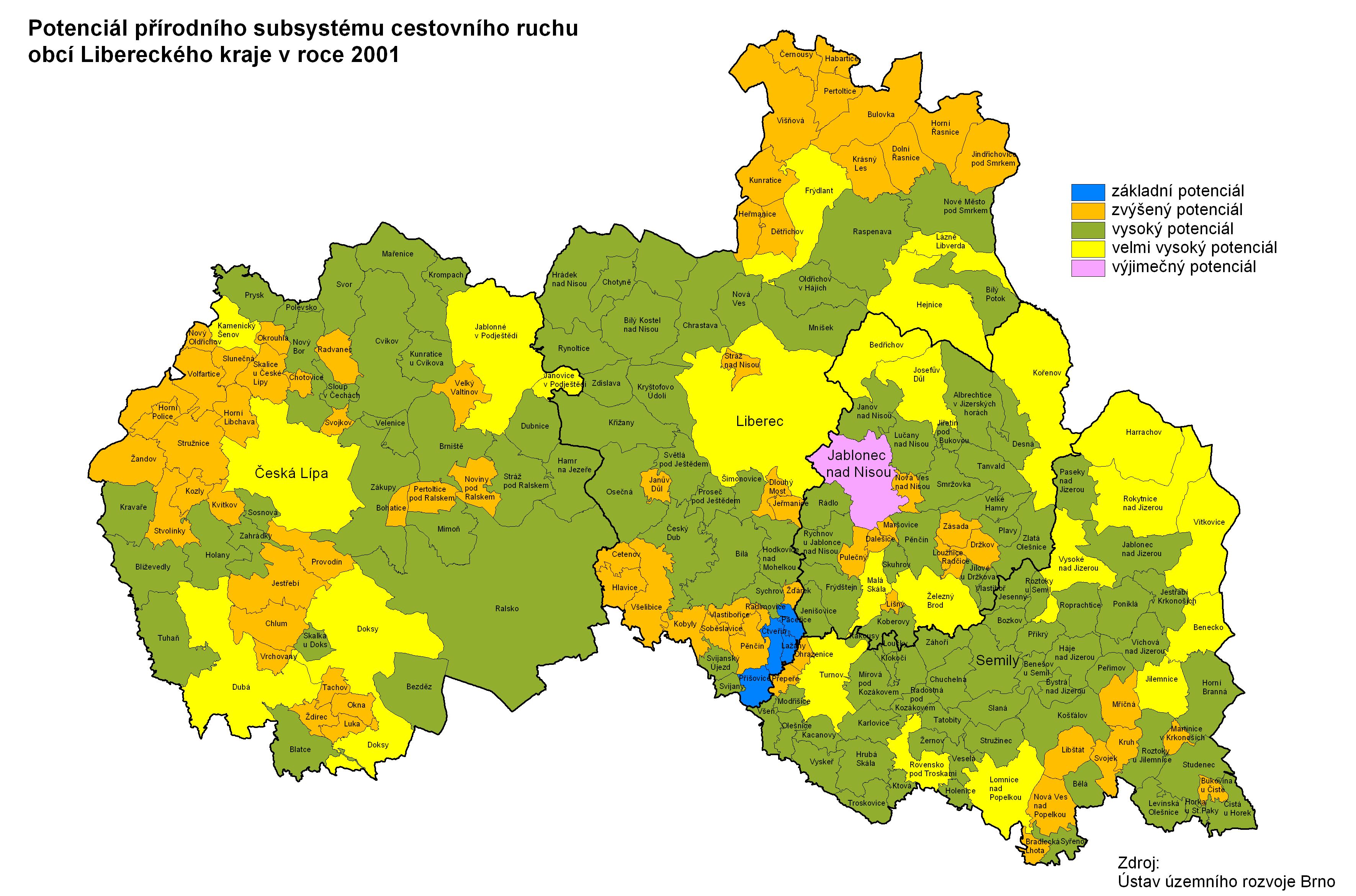 Potenciál přírodního subsystému cestovního ruch obcí Libereckého kraje v roce 2001 |