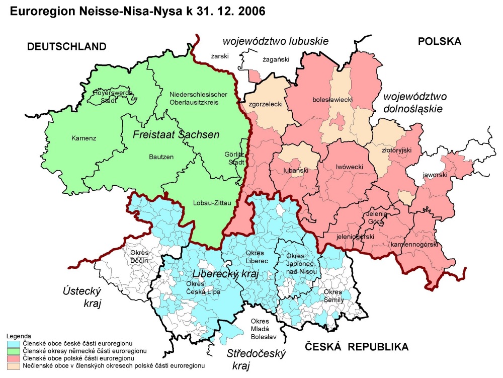Liberecký kraj se v říjnu roku 2006 připojil společně s dalšími regiony ke společné deklaraci evropských regionů nazvané "Demografická změna jako regionální výzva". Deklarace reaguje na významné demografické změny v populačním chování obyvatel způsobené poklesem úrovně porodnosti, stárnutím obyvatelstva a také mimo jiné emigrací mladých lidí. Upozorňuje na problémy, které tento vývoj s sebou může přinést v budoucnu. Svůj podpis k deklaraci připojili představitelé všech tří regionů, na jejichž území se nachází Euroregion Neisse-Nisa-Nysa - za Liberecký kraj hejtman Petr Skokan, za svobodnou zemi Sasko Georg Milbradt a za Dolnośląskie vojvodství Rafal Borutko. Významné změny v demografickém chování obyvatelstva se však nedotýkají jen iniciátorů vzniku této deklarace, ale téměř všech evropských regionů. Cílem společné deklarace evropských regionů je proto výzva ke společnému řešení demografických problémů. Český statistický úřad Liberec společně se Statistickým úřadem svobodné země Sasko, Kamenz a Statistickým úřadem, Wrocław zpracoval publikaci "Děti v Euroregionu Neisse-Nisa-Nysa", která mimo jiné dokumentuje některé výše uvedené problémy. Právě předkládaná analýza vychází z dat statistických úřadů České republiky, Německa i Polska, které jsou doplněny údaji z externích zdrojů. Většina údajů z běžné statistiky obyvatelstva či údaje o školství, zdravotnictví, sociální a kulturní oblasti popisuje roky 2000 a 2005. Významným zdrojem dat za českou část se stalo sčítání lidu, domů a bytů uskutečněné v roce 2001, za německou část údaje z mikrocensů zaměřených na rodinu a děti, které proběhly v roce 2002 a za polskou část data ze sčítání z roku 2002. Rozhodující část předkládaného materiálu je věnována demografickému vývoji, speciálně pak rozdílům ve věkovém složení obyvatelstva na jednotlivých stranách hranice v rámci Euroregionu Neisse-Nisa-Nysa a také rozdílům v úrovni porodnosti, úmrtnosti a intenzitě migrace. V neposlední řadě publikace také velmi podrobně popisuje odlišnosti v počtu a struktuře dětské složky populace. Další stejně významnou součástí tohoto analytického materiálu je porovnání struktury rodin a podmínek bydlení v jednotlivých okresech euroregionu a následně pak sociálního prostředí, které spoluvytváří školské, zdravotnické, sociální a kulturní zázemí. Popis a hodnocení sociálních podmínek života obyvatel a zvláště pak dětí v Euroregionu Neisse-Nisa-Nysa však narážel na omezenou dostupnost dat a časté odchylky v metodice. V důsledku rozdílných metod zjišťování a chybějících regionálních dat má srovnání o skutečném sociálním prostředí dětí v této části jen omezenou vypovídající hodnotu. Tvůrci publikace se při zpracování shodli na nezbytnosti zpracovat údaje za území okresů, na nichž se Euroregion Neisse-Nisa-Nysa rozkládá. Na české straně proto použité statistické údaje charakterizují okresy Česká Lípa, Jablonec nad Nisou, Liberec a Semily, na polské straně město s právy okresu Jelenia Góra a okresy bolesławiecki, jeleniogórski, kamiennogórski, lubański, lwówecki, zgorzelecki a złotoryjski a v některých vybraných případech je publikován i součet za členské obce z okresů nenáležejících k euroregionu. Na české a polské straně hranice členské obce euroregionu nevytváří spojité území. K 31. 12. 2006 bylo členy euroregionu na české straně 145 obcí z okresů Česká Lípa, Jablonec nad Nisou, Liberec, Semily, Děčín a Mladá Boleslav a na polské straně 43 obcí ze sedmi již zmíněných členských okresů a dvou nečlenských okresů (żagański a jaworski). Německá část euroregionu pak jako jediná tvoří ucelené území a prezentovaná statistická data vypovídají o městech s právy okresu Görlitz a Hoyerswerda a okresech Bautzen, Kamenz, Löbau-Zittau a Niederschlesischer Oberlausitzkreis. Přesto publikace "Děti v Euroregionu Neisse-Nisa-Nysa" přináší řadu velmi zajímavých informací, ukazuje na výrazné rozdíly mezi jednotlivými okresy nacházejícími se na území Euroregionu Neisse-Nisa-Nysa v demografickém vývoji a v sociálním prostředí obyvatel a v neposlední řadě potvrzuje opodstatněnost společné deklarace evropských regionů. |