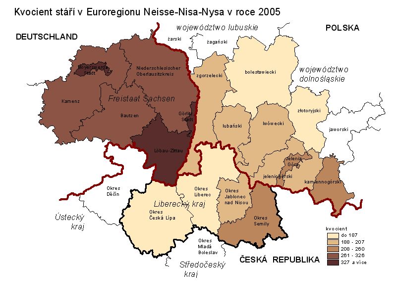Kvocient stáří v Euroregionu Neisse-Nisa-Nysa v roce 2005 |