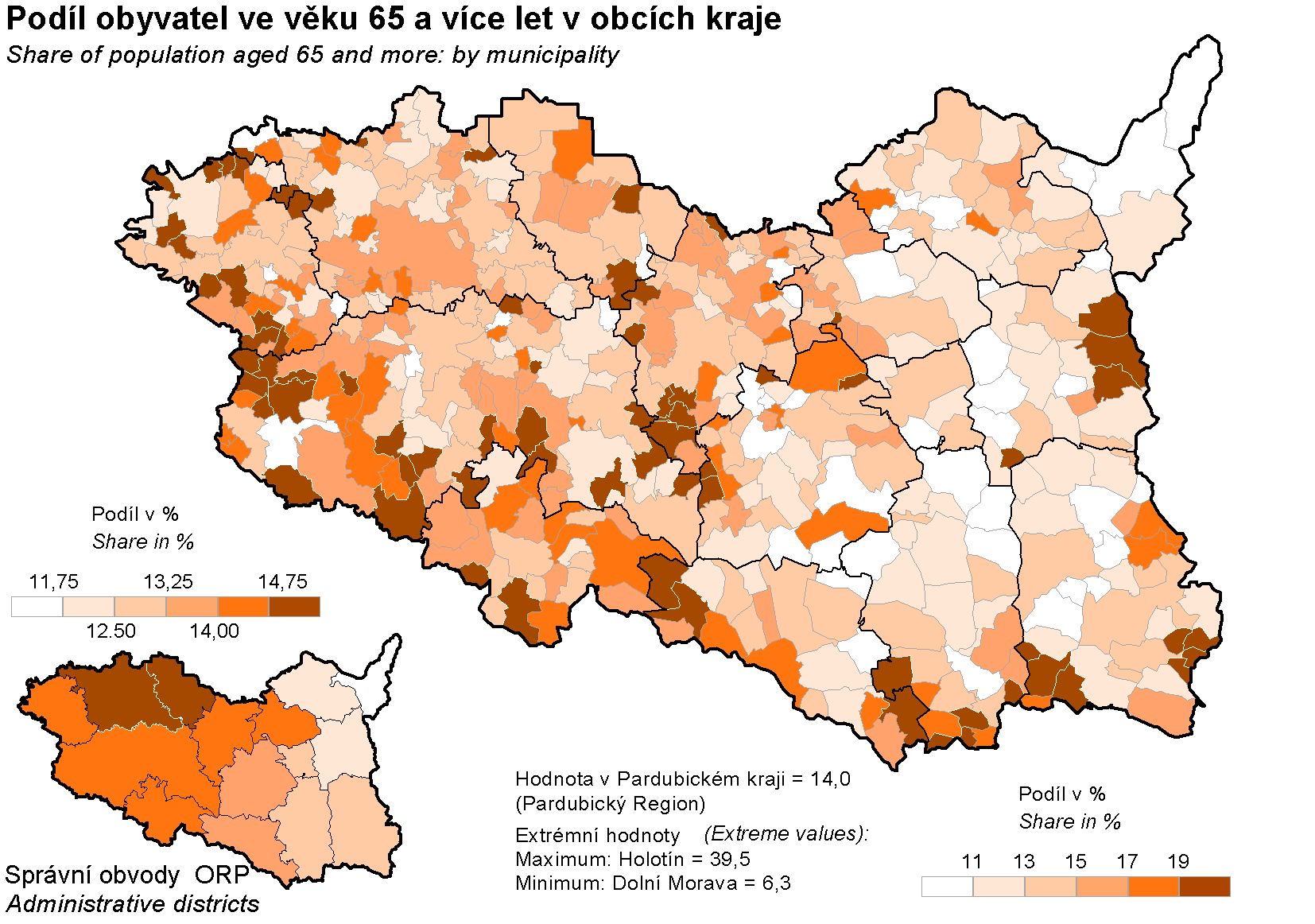 31. Podíl obyvatel ve věku 65 a více let v obcích kraje / 31. Share of population aged 65 and more: by municipality