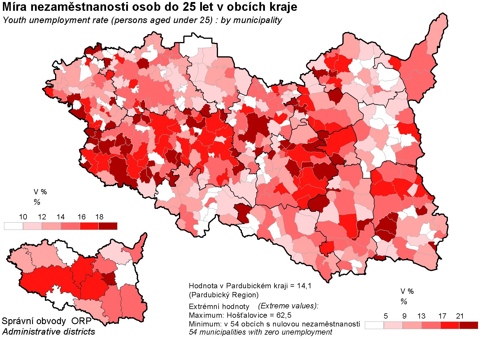 36. Míra nezaměstnanosti osob do 25 let v obcích kraje / 36. Youth unemployment rate (persons aged under 25): by municipality