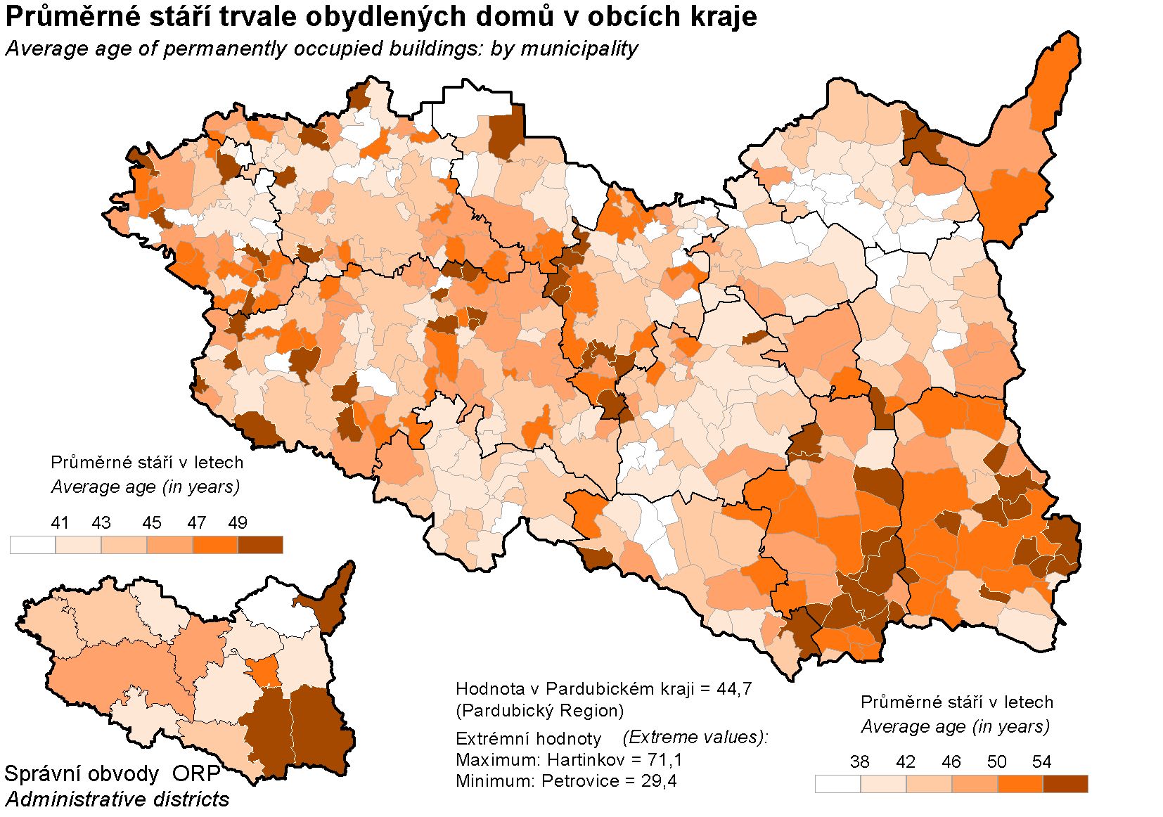 37. Průměrné stáří trvale obydlených domů v obcích kraje / 37. Average age of permanently occupied buildings: by municipality
