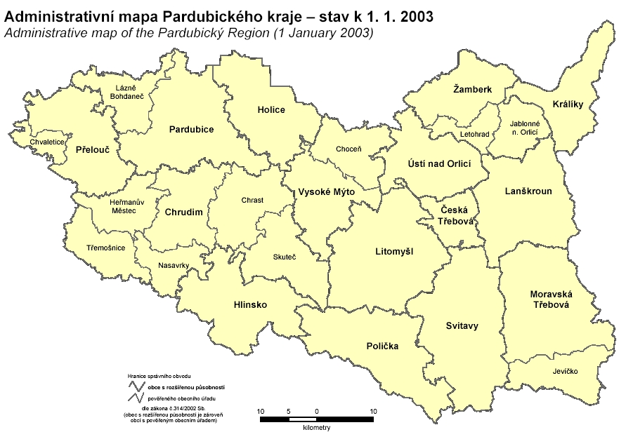 1. Administrativní mapa Pardubického kraje – stav k 1. 1. 2003 1. Administrative map of the Pardubický Region (1 January 2003)