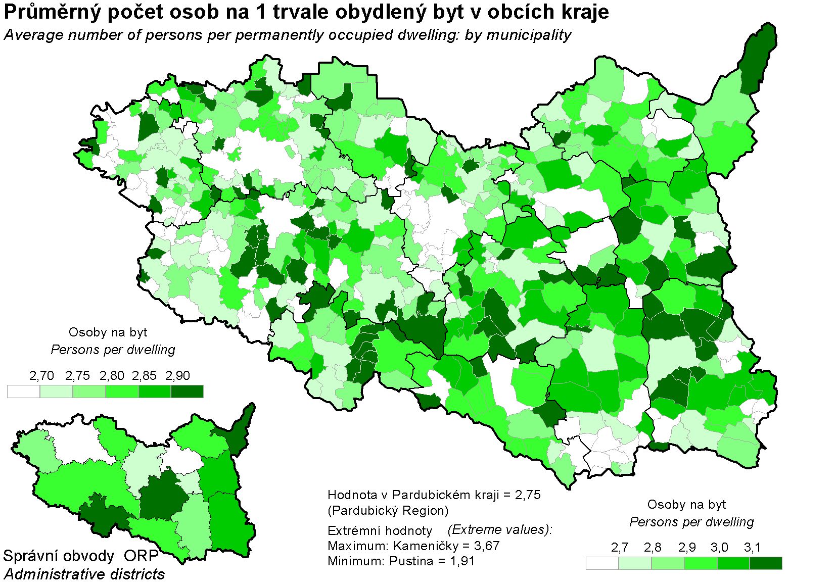 25. Průměrný počet osob na 1 trvale obydlený byt podle krajů a správních obvodů obcí s rozšířenou působností / 25. Average number of persons per permanently occupied dwelling: by region and district of municipalities with extended competence