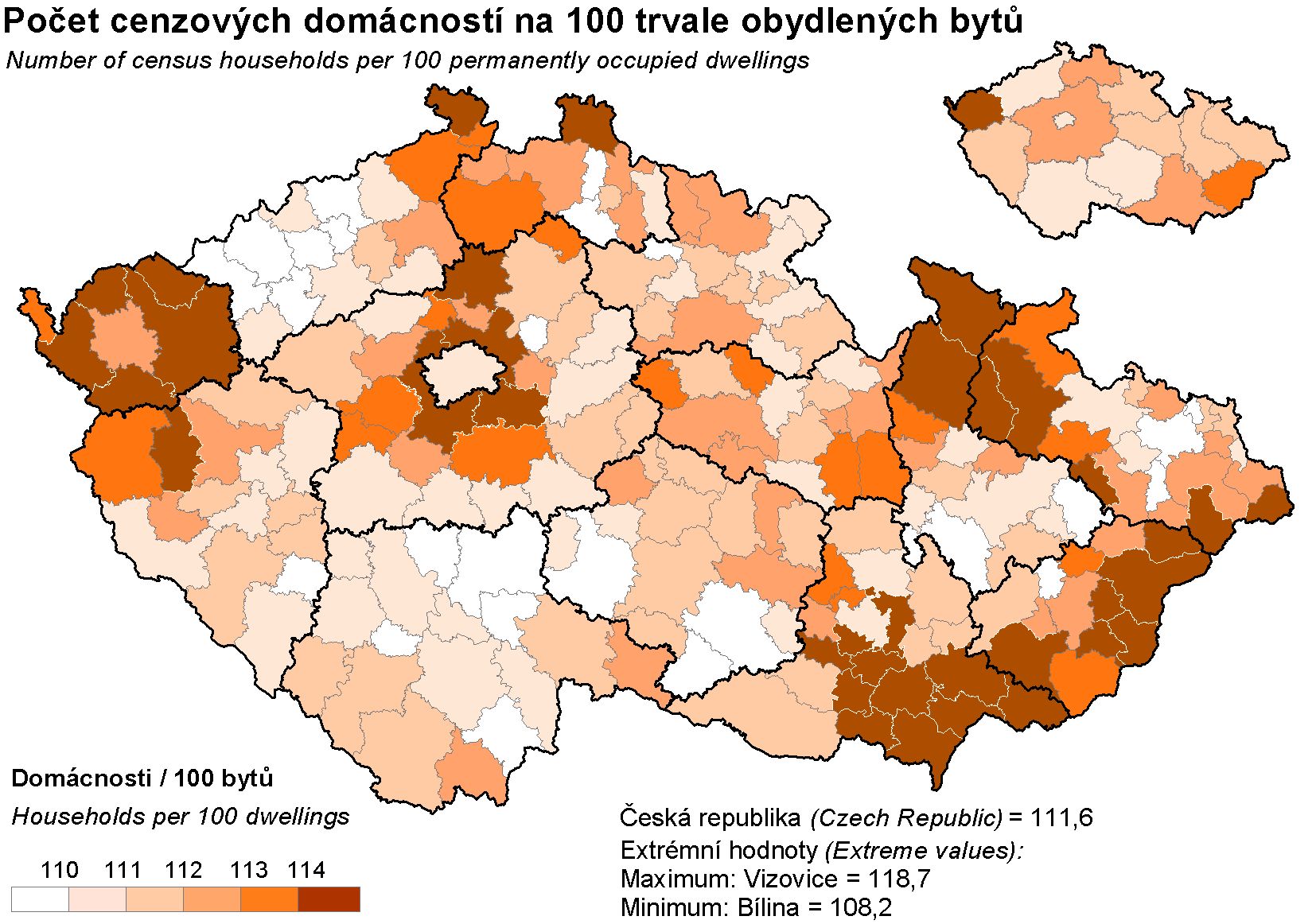 28. Počet cenzových domácností na 100 trvale obydlených bytů podle krajů a správních obvodů obcí s rozšířenou působností / 28. Number of census households per 100 permanently occupied dwellings: by region and district of municipalities with extended