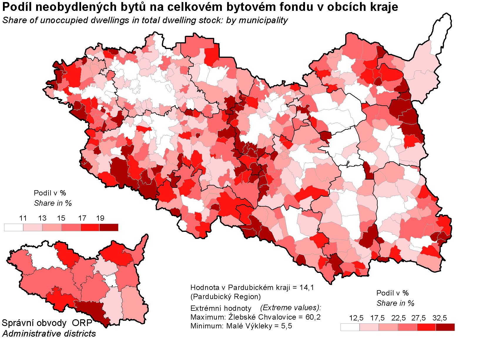 38. Podíl neobydlených bytů na celkovém bytovém fondu v obcích kraje / 38. Share of unoccupied dwellings in total dwelling stock: by municipality