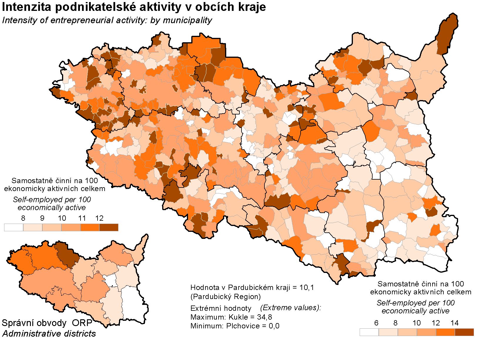 34. Intenzita podnikatelské aktivity v obcích kraje / 34. Intensity of entrepreneurial activity: by municipality